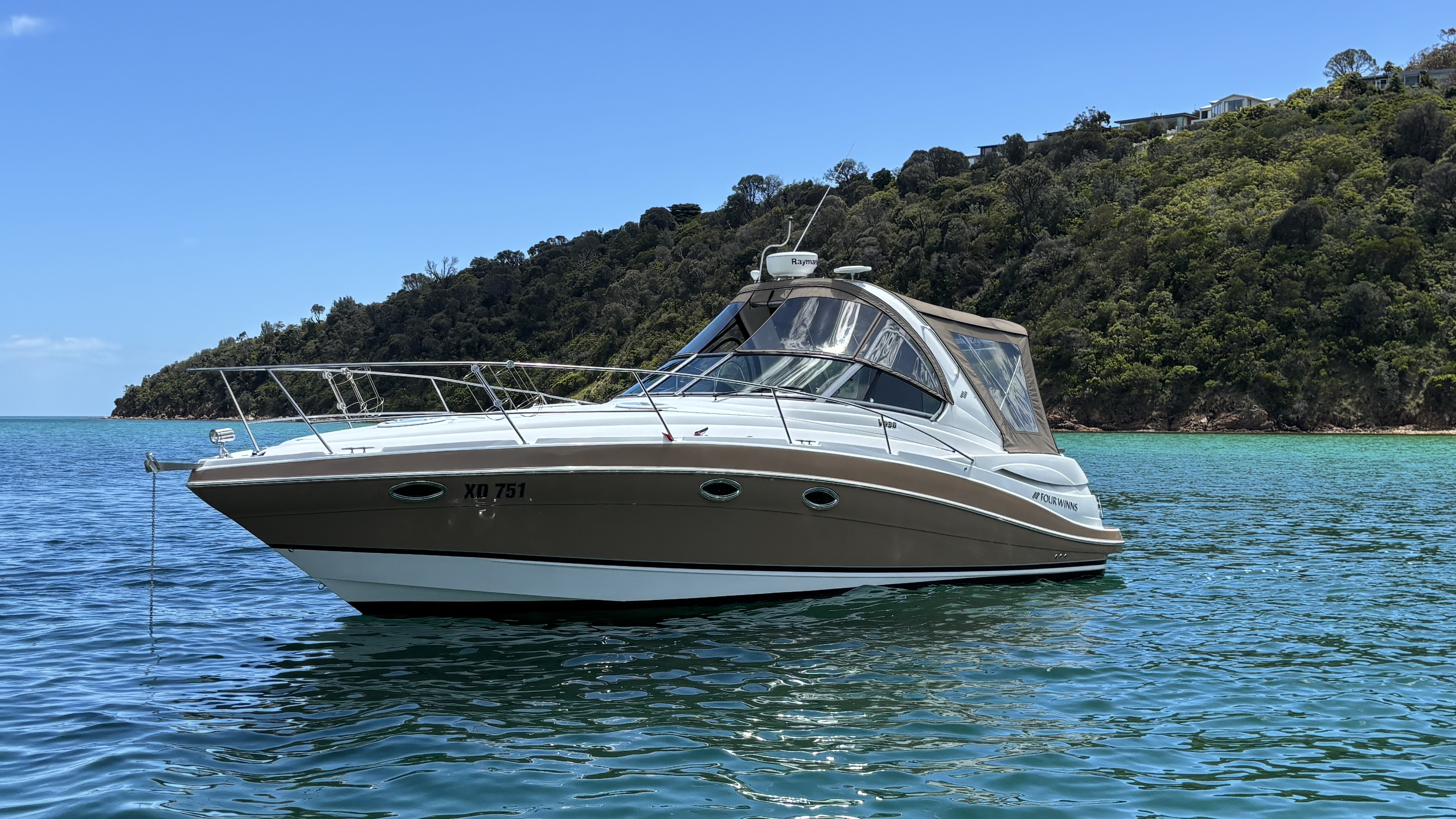 This beautifully upgraded Four Winns V338 Vista is one of the cleanest examples on the market—stylish, spacious, and thoroughly updated for effortless family cruising.Powered by twin MerCruiser 350 MAG 300HP V8s (approx. 430 hrs) with Bravo III drives, this V338 offers smooth, confident performance, supported by a bow thruster for easy docking and an ONAN 4kVA generator for full comfort at anchor.