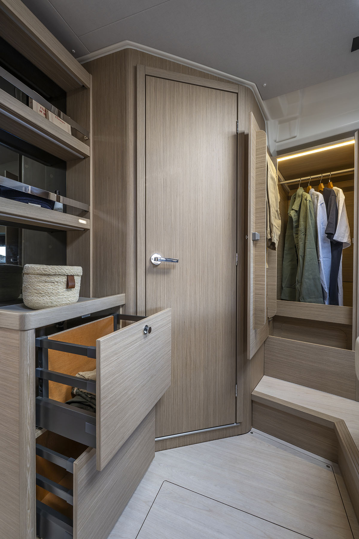 The owner’s suite is a sanctuary at sea, with a luxurious double berth, abundant storage and stunning views through oversized portholes. Additional cabins offer flexibility for guests or crew, with multiple layout options available.